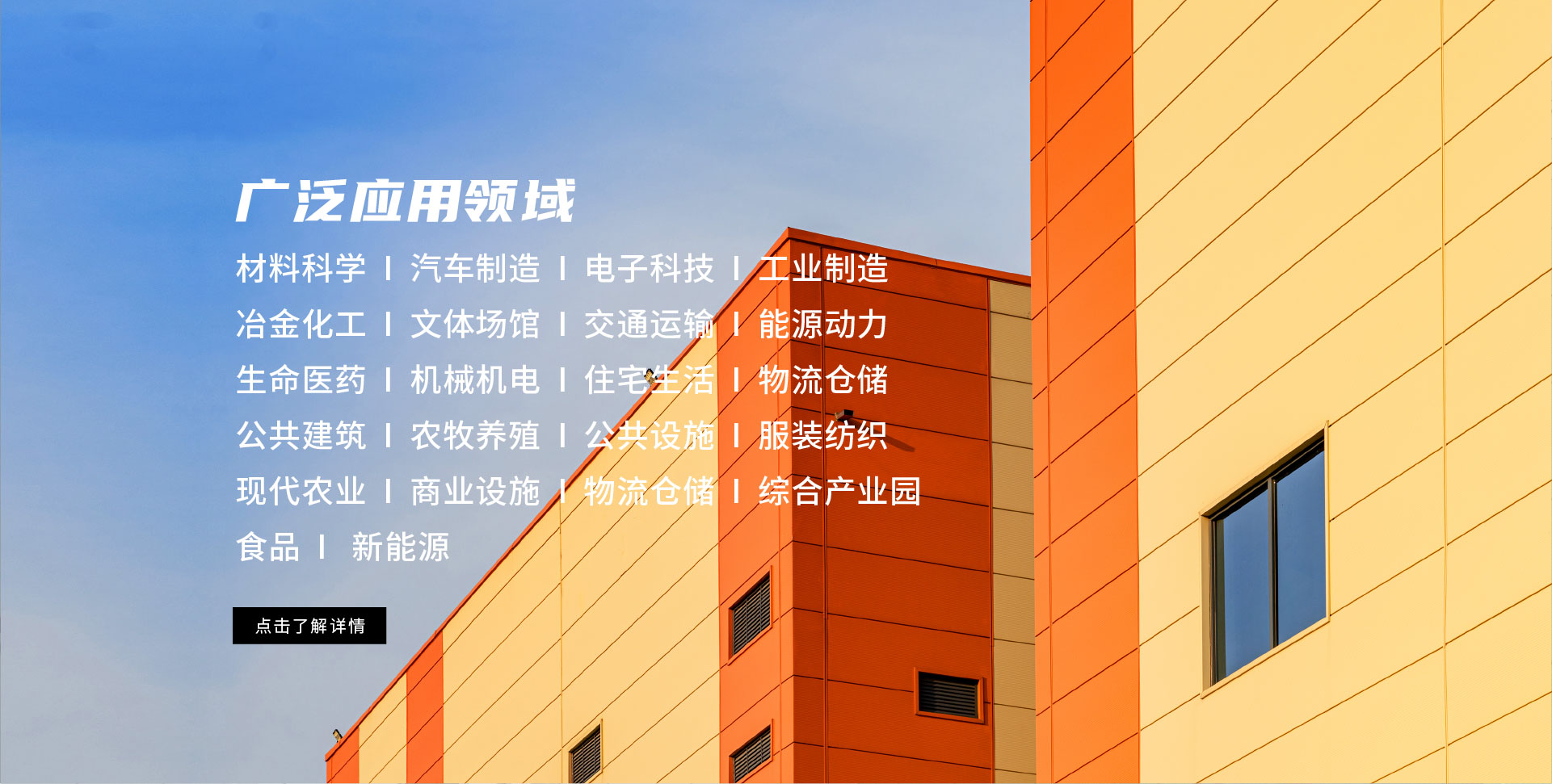 汽車制造 電子科技 綜合產業(yè)園 冶金化工 文體場館 交通運輸 能源動力 生命醫(yī)藥 機械機電